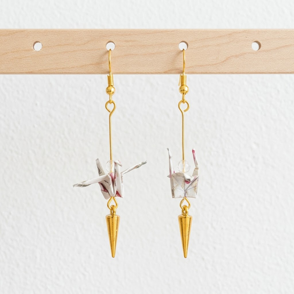 Origami-eyrnalokkar með gullskrauti quantity